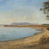 After sixteen months on the goldfields of Ballarat, Eugène von Guerard' settled in Melbourne seeking to establish himself in the field for which he had been trained - art. Sketches made in Ballarat were turned into paintings of lucky diggers, natives hunting, followed by landscapes of his travels in Victoria With few exceptions, his interest was in the wondrous creations of nature, landscapes of the sublime, rather than the mere works of man and his urban habitats. Early subjects of Melbourne were similarly inclined - View Near St. Kilda, 1854 and Melbourne, 1854, the latter sharing its panoramic view of Port Phillip Bay and distant hills with Mount Macedon from a Point Between St Kilda and Brighton, 1857. Views of the city did not incline towards the magnificent, whereas the Bay was a magnet for Victorian artists. Von Guerard was one of the first to draw attention to its scenic beauties, allied to his belief in the insignificance of man in the presence of the grandeur of nature.