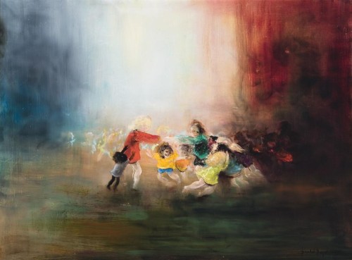 oil and sfumato on composition board