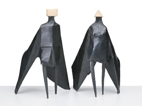 Although Chadwick's first creations were - quite appropriately, given his flying experience - abstract mobiles and elegant suspended constructions of metal and glass, it is his timeless architectonic forms combining elements of the human, animal and mechanical such as Walking Cloaked Figures VIII, for which he is most widely acclaimed. Evolving from the brooding standing and seated figures of the sixties onwards, the present sculpture encapsulates the series of works which Chadwick produced from 1976 featuring striding figures clad in voluminous, billowing cloaks. Although initially employing such cloaks for their formal qualities - the extravagant curves of drapery contrasting with the gaunt angularity of the bodies they define - the artist soon realised that their presence also solved the practical problem of supporting these sometimes unwieldy figures.