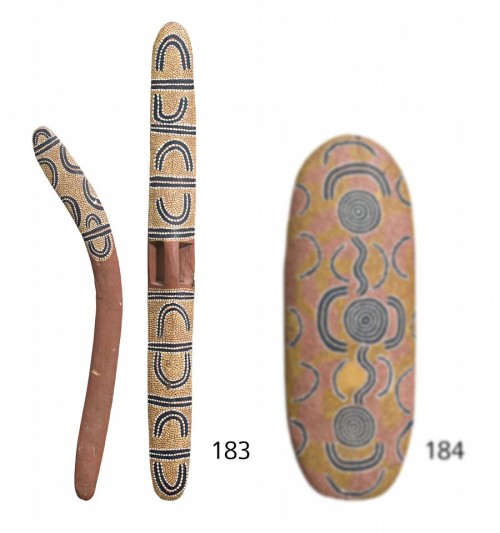 DECORATED SHIELD AND HUNTING BOOMERANG, c.1970