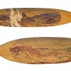 watercolour over pencil on hardwood, each with a wooden peg attached with sinew and a spinifex resin handle