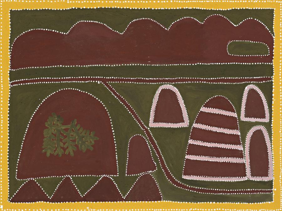 Painted in the final year of the artist's life, Ord River, Horseman Creek and Neermeroni - The Rain Maker, traverses the topographical and mythological terrain of Queenie McKenzie's beloved home, Texas Downs Station. The matriarch of a distinct and vital style, McKenzie's paintings demonstrate an individual knowledge and intimacy with a place which is contained within a broader network of cultural practice. As a senior founding figure of the Warmun School of painting, McKenzie's reputation within the movement is matched only by that of her good friend and mentor, Rover Thomas. As noted by Eric Kjellgren, Associate Curator of Oceania at the Metropolitan Museum of Art, 'In little more than a decade of active painting, Queenie McKenzie emerged as a prominent and compelling commentator on the Aboriginal experience. Participating in numerous solo and group exhibitions, she created works that range in scope from the creation of the world, through the violent encounters of the colonial era, to the present day.'1