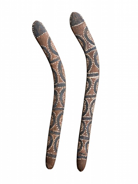 A PAIR OF PAINTED BOOMERANGS, 1970s