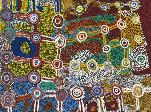 This painting is accompanied by acertificate of autheticity from Warburton Arts Project which states in part: 'This painting, relating to Lake Baker, has a very strong cultural and historical significant as do all artworks created by Mr McArthur. He relates his family and traditional history to his paintings. For this reason many of his artworks have been retained by the Warburton Collection.'