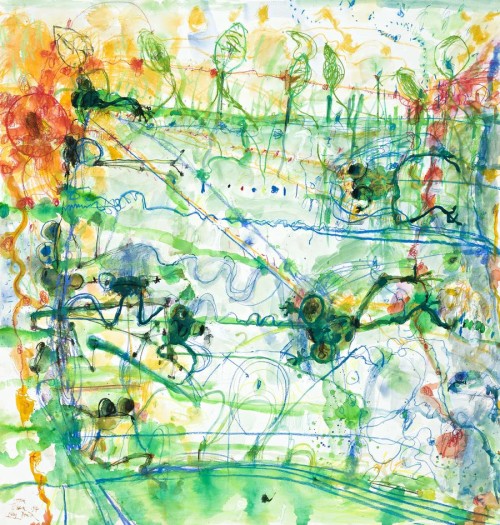 signed, dated and inscribed lower left: John / Olsen 97 / Lily Pond