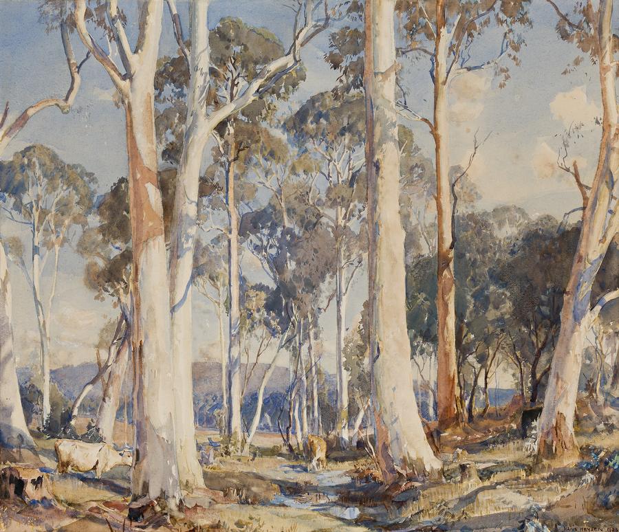 Heysen rejoiced in the beauty of the area, painting it throughout the changing seasons and times of day - of mists or the brightness of spring, early morning light and the hazy heat of midday, to the gentle light of day's end. The constant throughout his art was the noble gum. Heysen wrote: