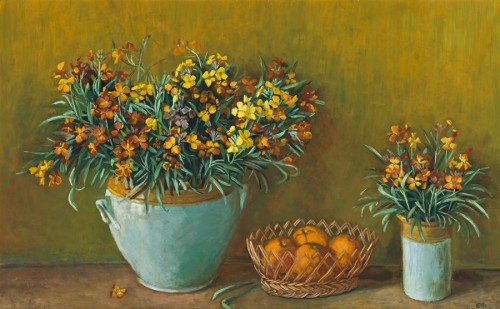 Celebrating the fruits and hidden treasures of her own immediate world, Margaret Olley belongs to a prestigious tradition of still life painters - from Vermeer and Chardin to Cézanne and Morandi - who find inspiration, beauty and a rich spirit of humanity in the most familiar of subject matter. Within the history of Australian art, moreover, she is regarded among the most admired and distinguished exponents of the genre; as James Gleeson asserts, '...I can think of no other painter of the present time who orchestrates his or her themes with such richness as Margaret Olley. She is a symphonist among flower painters; a painter who calls upon the full resources of the modern palette to express her joy on the beauty of things.'1