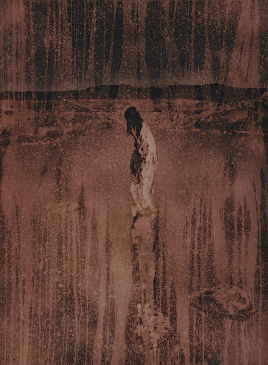 Awash in sepia-tones and speckled with an atmospheric haze, the landscape in Untitled 2005, recedes and flattens around the radiant central figure, our protagonist. Like many of Noonan's works, there is a strong narrative thread - the viewer can imagine what has just happened and what will happen next; whilst ultimately unknowable, this mysterious element results in an overriding sense of coherence. As Fahey concludes, 'while a certain degree of abstraction is created through Noonan's process of mediation, there is also an intimacy created by bringing representations of the past, things that happened 'before', in existence in the 'now''.3 The density of Noonan's work is expressed in these moments of shifting temporalities.