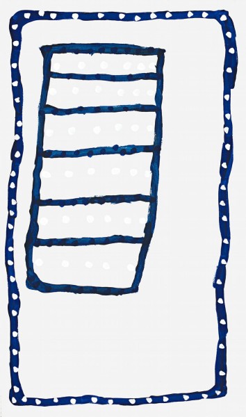 Renowned for his unique interpretations of body decorations and markings used in the ceremonial activities of the Larrakia people, Prince of Wales (Midpul) drew inspiration from these traditional activities for the imagery in his contemporary paintings. Born Midpul around 1938 at Belyuen (Dellisaville), a small community on the far side of Darwin Harbour. He was the son of acknowledged Larrakia leader and traditional land owner Imabul (Old King George) and was also known as Prince of Wales, this title was re-enforced when he danced for Queen Elizabeth during a royal trip to Australia in the 1960s. He was a custodian and leader of Larrakia ceremonies and dances, a leading didgeridoo player and ceremonial body painter for much of his life. He started painting in 1995, initially on discarded pieces of wood and cardboard and participated in his first exhibition the following year. His first solo show was in Melbourne in 1997 and in 2001 he won the painting sections of the Telstra National Aboriginal and Torres Strait Islander Art Award. Prince delighted in the whole process of painting, creating modern minimalist art works, characterized by simple geometric forms floating above a sparse ground with dotting emphasizing the forms.