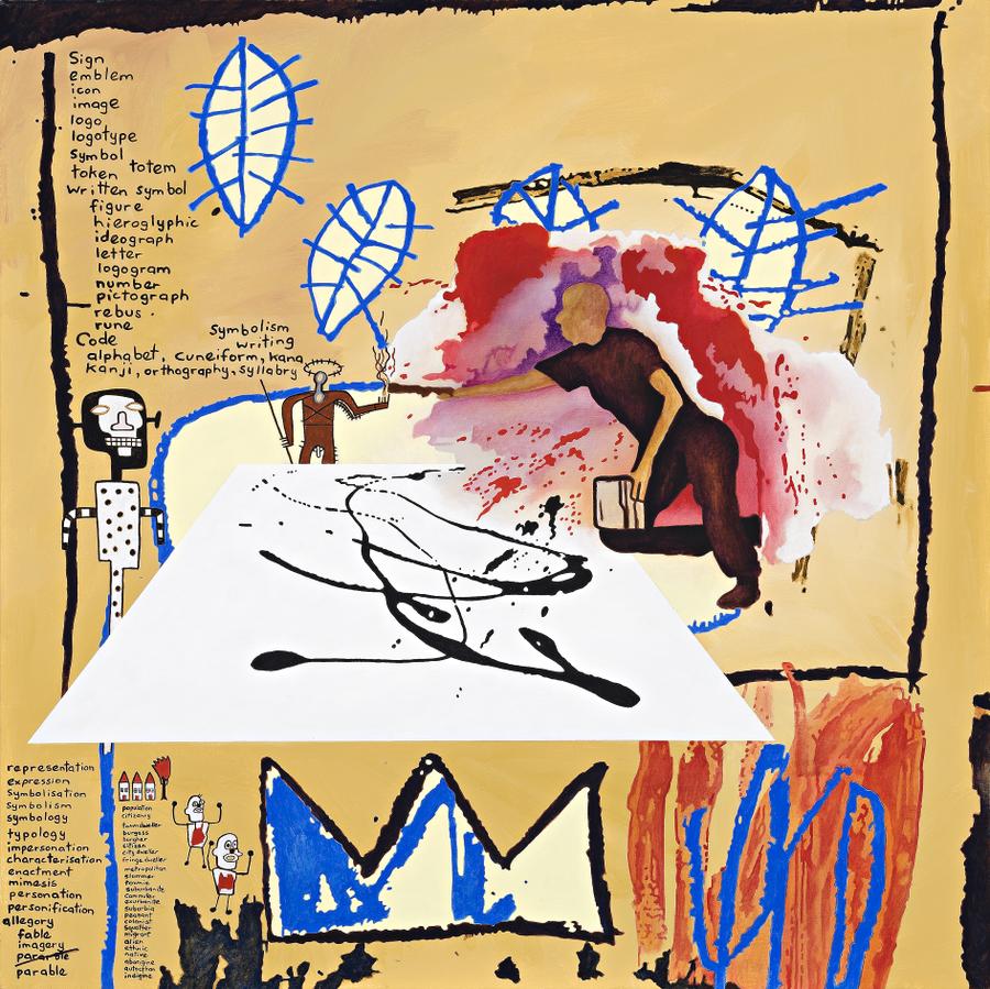 signed, dated and titled verso: G Bennett 30-03-2001 / "NOTES TO BASQUIAT: CUT THE CIRCLE"