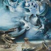 James Gleeson was without doubt Australia's leading surrealist painter and he remained steadfast in his commitment to the philosophy underpinning this international movement throughout his career. The1980s were a particularly creative and productive period for Gleeson and Nightfall on a Tentative Yesterday is a key work from this time featuring the mutable, transforming landscape as it merges with the ocean. The sea has been a poignant symbol of the unconscious since Greek mythology and the organic merging of body forms and landscape in this work hark back to the mutable shape changing sea god Proteus, son of Poseidon. His inextricable link to the ocean made him a symbol also of the unconscious. In fact, Carl Jung defined Proteus as the personification of the unconscious. Gleeson most certainly understood these links between psychoanalysis and mythology and throughout this series of works we find rich panoply of shape changing, protean forms in the process of transformation as they merge with sea, sky and land.