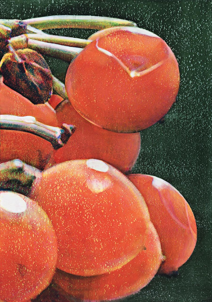 With luscious themes of abundance and summer-ripe beauty, Tim Maguire's berry and full floral bloom paintings are immersive in their cinematic scale and technical achievement. Resolutely contemporary, Maguire's paintings allude to the past with a particular reference to 17th century Flemish still-life painting. Like the vanitas themes which preoccupied the Dutch, here nature has concurrently a real and metaphysical value. Maguire beguiles and seduces us whilst simultaneously generating meaning beyond the exact realism of the subject. In a manner observed by historian Kristine Koozin of the Dutch masters as 'a kind of "metaphoric realism", abstract ideas are explained through a syntax of objects rather than through the didactic narrative of human action in history painting.'1