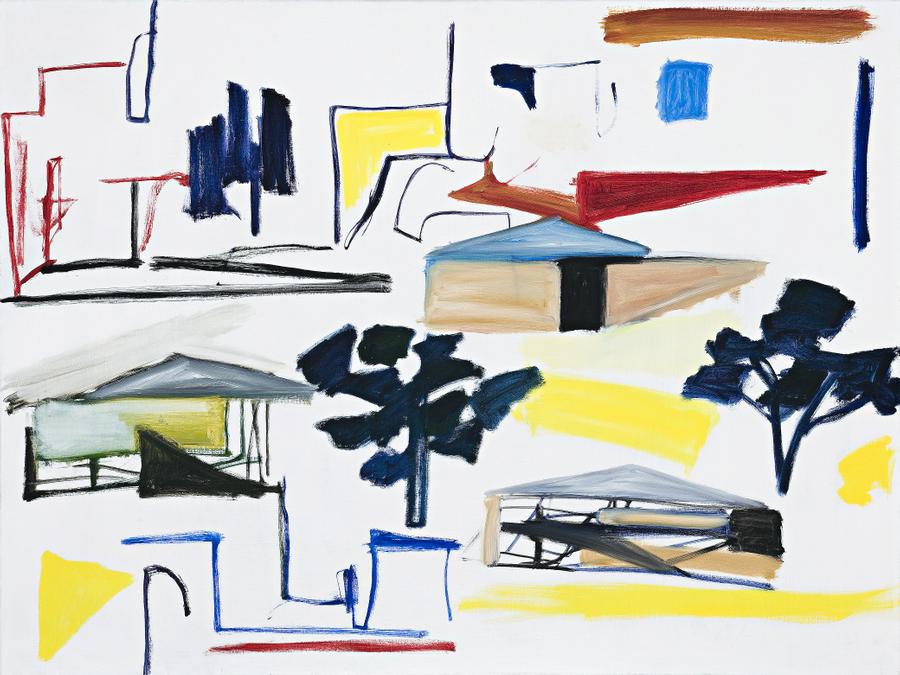 signed, dated and inscribed verso: 26/1/87 /Ken Whisson / Title ‘ Farm Drawing ‘2’ signed, dated and inscribed on canvas verso: Ken Whisson / ‘Trees and Structures’ 26/1/87