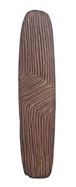 carved and incised wood with broad zig-zag design and traces of red pigment