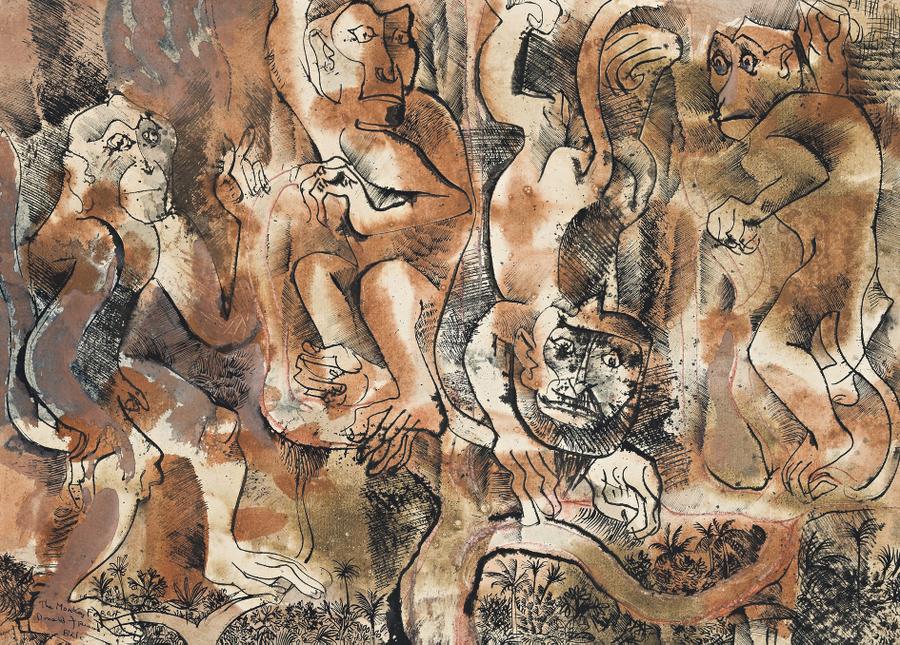 signed and inscribed lower left: The Monkey Forest / Donald Friend / Bali
