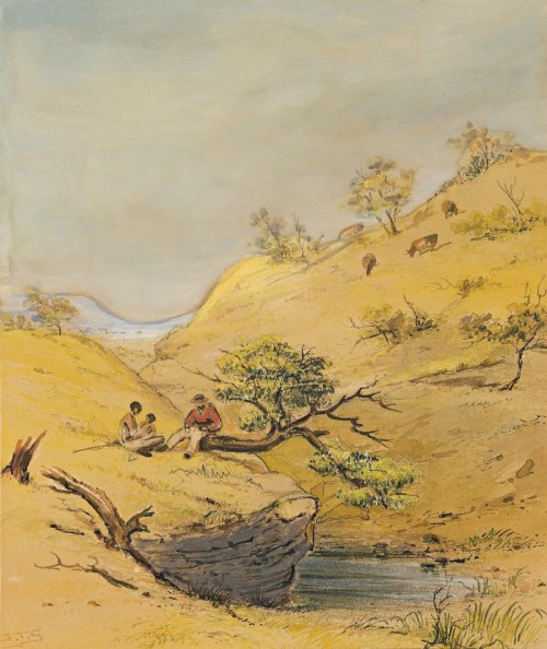 NATIVES AND PASTORALIST, ADELAIDE HILLS, c.1845