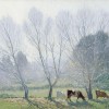 The early morning mist rising from the ground warmed by the ascending sun is suspended for a few magical moments before disappearing in the light of day. Elioth Gruner is the unrivalled master of mists and morning light, Frosty Morning 1932 being a classic example. Such transient effects are central to his art, as also the view looking into the light, which saturates the painting. The sun likewise warms the nakedness of the trees in winter undress, a metaphor of the season of regeneration. Cows graze peacefully in a stillness that is palpable, aesthetic appeal heightened by compositional finesse and captivating colour, all enveloped in the gentle, harmonising atmosphere. The disarming appeal of the mauves and blues of his shadows unnerved some of his influential contemporaries. The acquisition of one of his most popular paintings, Spring Frost 1919, which was awarded the Wynne Prize for that year, was opposed by W. Lister Lister, then Vice-President of the Trustees of the Art Gallery of New South Wales because "'the shadows were too blue''. Moreover, Bernard Hall, Director of the National Gallery of Victoria, 'exclaimed to Gruner that he would never see those colours,' to which the artist replied 'you would if you got up early enough'.1 The media hailed the painting 'as the picture of the year'.2 It was eventually acquired by the Gallery in 1939 as a gift.