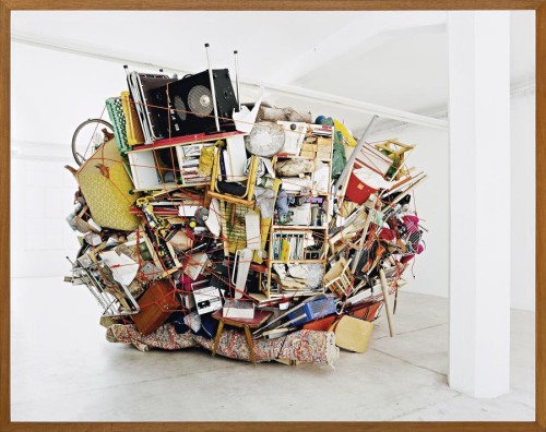 In 2004 the Sydney artists Claire Healy and Sean Cordeiro embarked on a legendary 'clean up' of an artist's studio at the Glashaus, Weilam Rhein in Germany thus transforming the contents of a profoundly messy artist's studio into a gigantic ball dextrously tied with red string. They referred to the installation as 'the entire found detritus from an artists warehouse'. The 'detritus' tied into one of the world's most aesthetically pleasing bundles rendered the space pristine so that it now echoed the white cube of the contemporary gallery scene. As Russell Storer points out, 'For their ambitiously conceived and immaculately produced installations, Healy and Cordeiro recover the materials and objects of consumer society and transform them into startling works of formal rigour and beauty.'1 Deceased Estate, like much of the artists' output, cleverly examines the tacit relationship between art and real estate and refers to the process of gentrification that artists imbue the fringe neighbourhoods they inhabit and improve, of which they are then eventually forced out. The Glashaus Installation also references the itinerancy of artists who, through necessity and the impossibility of home ownership, are compelled to bundle up their studios and move on with disturbing frequency.
