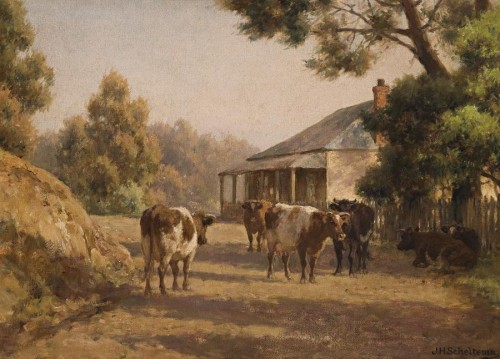 The Song of the Lamb: The Wesfarmers Collection of Australian Art, Art Gallery of Western Australia, Perth, 1989, p. 42 (illus., as 'Bush hut with cattle in foreground')