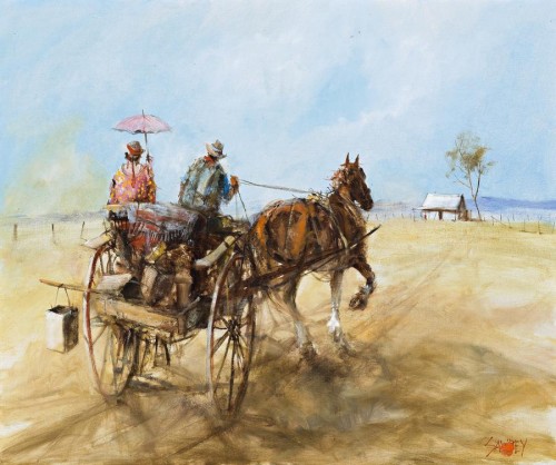 signed and titled verso: “THE RABBITER AND HIS MISSUS” NORTHERN / N.S.WALES / HUGH SAWREY
