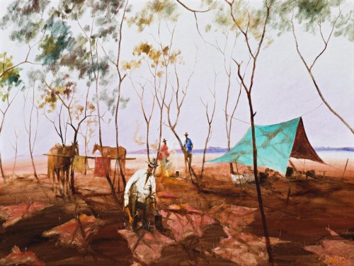 inscribed verso: “THE ‘ROO SHOOTERS' CAMP” WEST QLD. / HUGH SAWREY