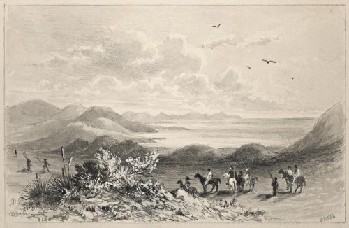 Angas contributed twelve engravings drawn on wood from sketches taken during John McDouall Stuart's expeditions, including his Third Expedition (in the vicinity of Lake Torrens), November 1859 to January 1860. These were illustrated in Explorations in Australia, The Journals of John McDouall Stuart, during the years 1858,1859, 1860, 1861 & 1862, when he fixed the centre of the continent and successfully crossed it from sea to sea. Angas made all the Stuart exploration drawings for engravings in England, after his return there in 1863. These were published in London in 1865 in Stuart's journals. Angas did not accompany Stuart on any expedition. He worked from sketches supplied to him and relied on Stuart's journal descriptions. Most of the original Angas drawings for the Hardman edition of Stuart's journals are held in the collection of the National Library of Australia, Canberra.