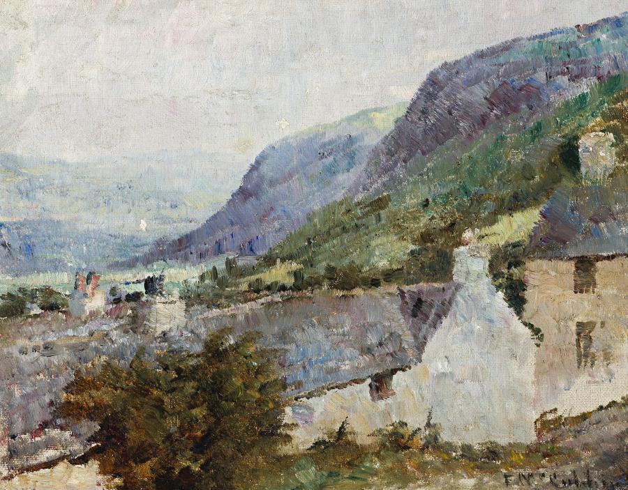 inscribed indistinctly verso: [Va]le of Conway / [by] ... McCubbin / (obscured by old adhesive) ... 1907