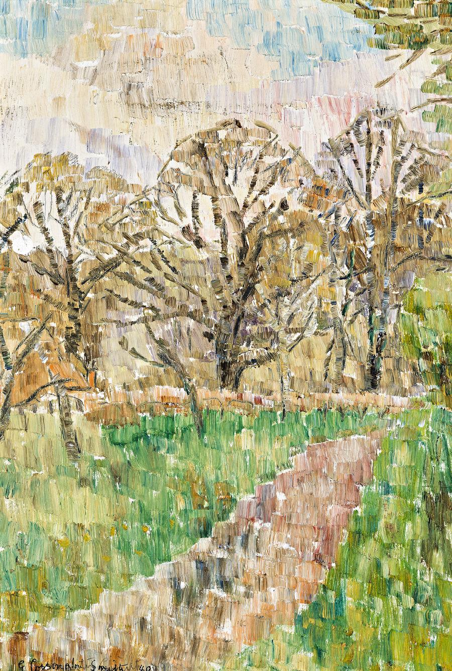 signed and inscribed with title on label verso: Winter Trees, Sussex / Grace Cossington Smith