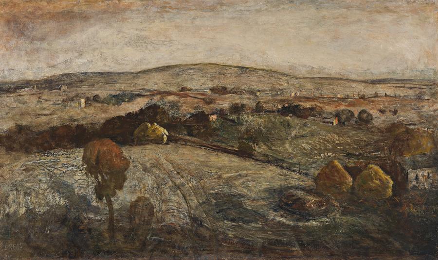In his mastery of the landscape, Lloyd Rees imbued his paintings with life and atmosphere, overflowing with memories. Through the tilled soils and ancient buildings in his paintings of France, Italy and Greece, Rees celebrated man's beneficial presence over the millennia. In Australia he brought that same humanising element to his work, of houses, haystacks and other evidences of habitation, as is so evident in Hills of Bathurst. The fruitfulness of his views is matched by the fertility of his imagination, rich in romantic associations and bathed in light that is almost palpable. Brett Whiteley, who greatly admired Rees's art, described his paintings as 'completely real descriptions, yet abstract at the same time'.1 The formal qualities of his work are as appealing as the recollections they evoke. Landforms swell and whisper of fertility and the goodness of the earth. Of landscape painting, Rees wrote, 'In the first case the inspiring moment would come from nature; a glimpse of exciting shapes and forms, or a passing mood of light or air. These would be fixed in memory by a sketch... and from this the picture would grow.'2 The painting, of course, 'has an inner life of its own, independent of the subject matter' and grew freely in the studio.