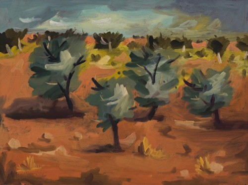 From timber cutter to commando, Melbourne's National Gallery School to cane cutting in north Queensland, painter of fences, portraits, flowers and landscapes, gold prospector, shearer, lover of horses, racing and punting - Sam Fullbrook was all of them and more. And they all found their way into his art. Diversity was the keynote of his life and his art. His portraits ranged from jockeys, Jockey, Norman Stephens (The Brisbane Club Collection), which won the 1974 Archibald Prize, to the Governor-General. Democratic in his approach, Fullbrook once said that he aimed to 'paint good pictures that children will love'.1 It is no paradox that their lyrical beauty and simplicity of directness were gauged to appeal to the naive and sophisticate alike; but, as in a child's vision, his paintings have a freshness and innocence that evokes the elemental. To this is added his bushman's vision and empathy with the country and its fauna. His compassionate paintings of Aboriginal people drew upon the time spent living and working in an Aboriginal co-operative in north-western Australia. This understanding of the people and their identity with the land is strongly felt in Jacob Obajui 1956-60 (National Gallery of Australia, Canberra), a portrait of the head stockman and elder of the Pindara co-operative. Fullbrook's own time as head stockman in the Pilbaraincreased even further his identification with the environment. Underneath a toughness of character and appearance lay a deep feeling for the land and its creatures, finding expression in such distinctive paintings as Sundown near Warrawagine and the evocative 1963 Wynne Prize winner Sandhills on the Darling (collection of the Art Gallery of New South Wales, Sydney).2 Few paintings could be more endearing and humorous than those of native animals - koalas, kangaroos, platypus - even fish. In Aeroplane and Emu 1964 (private collection), one of his finest works, movement is a metaphor of freedom. Sundown near Warrawagine is informed by a different sense of movement engendered through the lively strokes of his brush. The landscape of Shay Gap pass in the East Pilbara is one of the oldest on earth, of majestic ranges, gorges and deserts. The Warrawagine cattle station nearby joins the Great Sandy Desert to the east. Fullbrook chose the less spectacular, exploring the poetry of the subject in the silence of a timeless land. The softening effects of sunset, or more colloquially 'sundown', are employed to increase that sense of intimacy and harmony so readily felt at the closing of the day. Of art and life, Fullbrook said, 'put your heart and soul into it. Do that and people will love you for it.'3
