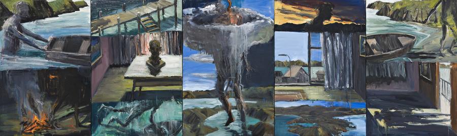 FIVE PANELS WITH VOLCANO MAN, 2004