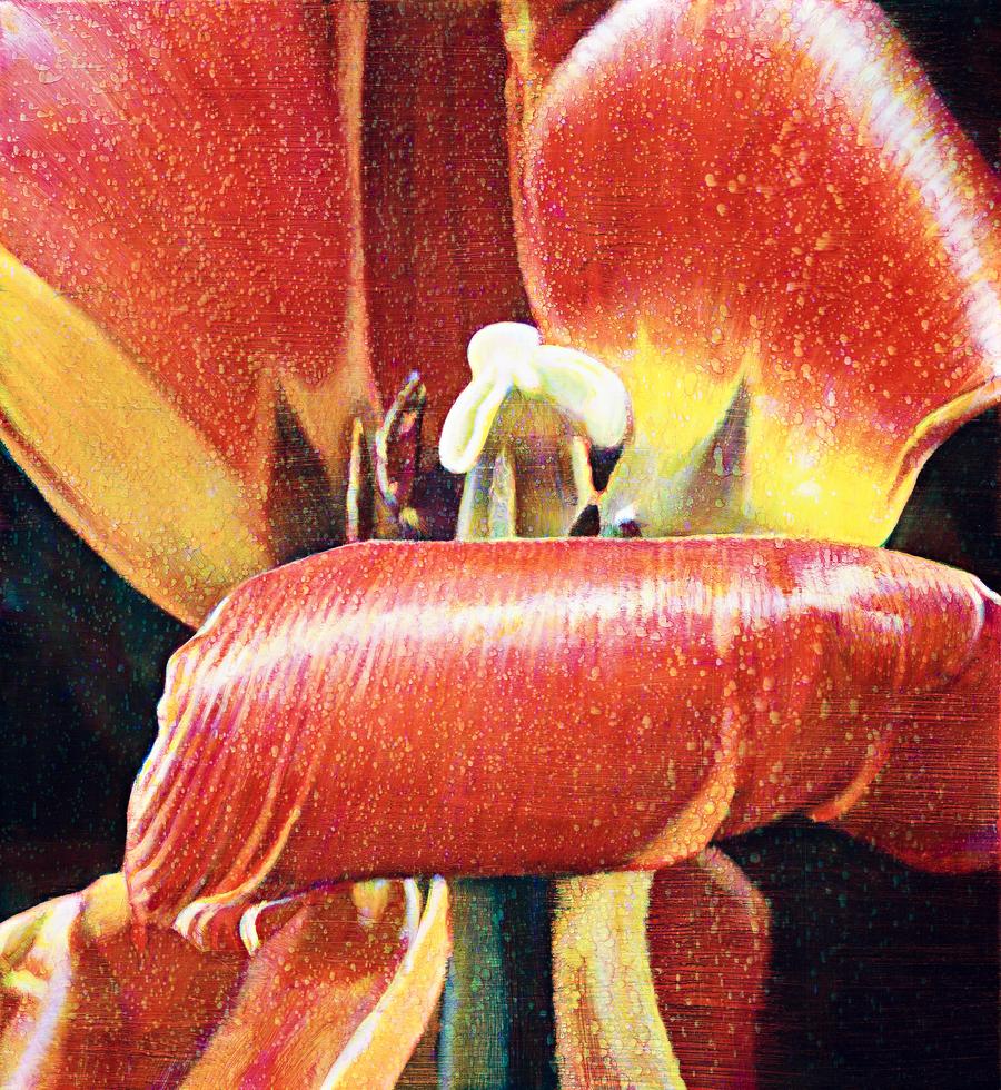 There is a sense that these are Apollonian paintings created by Dionysian means: calm attained by struggle. Through time based activities the artist achieves something that feels calm and timeless.'