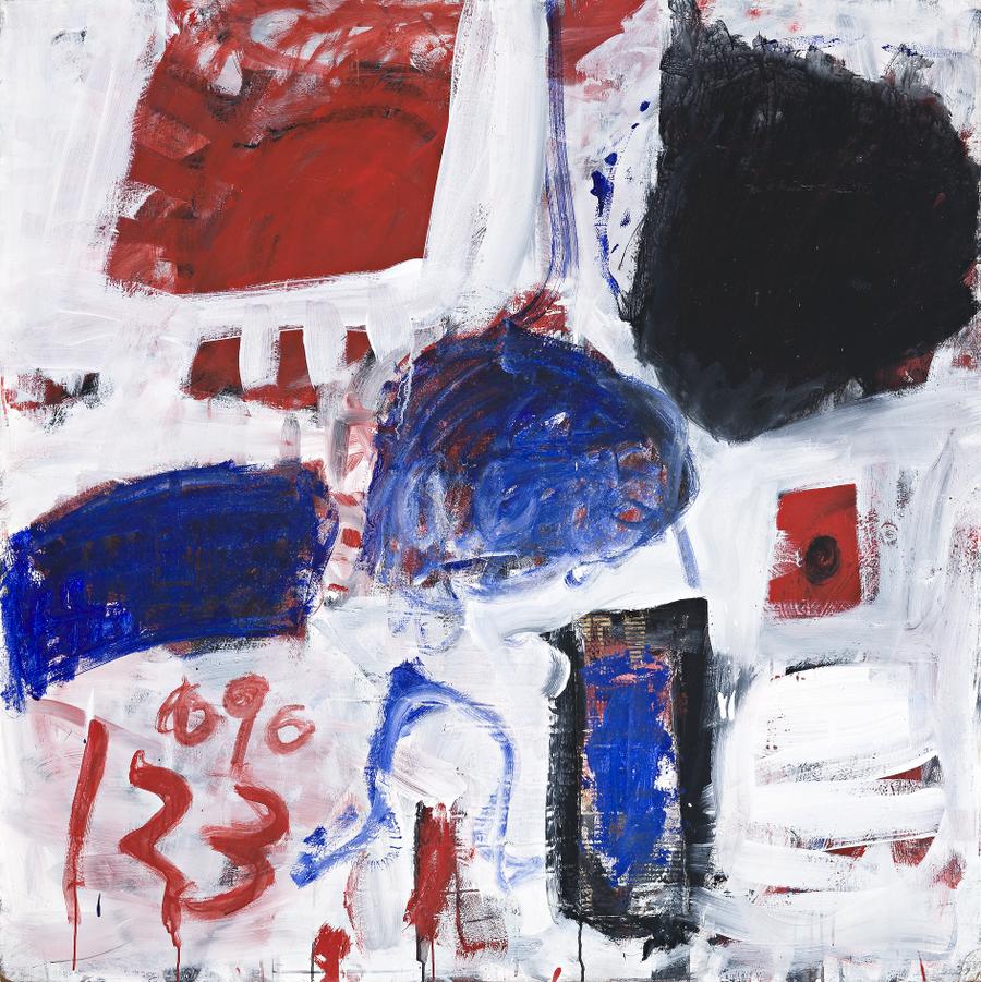 As in the best of art, Tony Tuckson's paintings are about painting - the application of paint, dribbled, surface tension, space, of colour, form, gesture - exploring creativity and the creator's role in it. They are of endless fascination, better felt than rationalized. Tuckson was one of Australia's finest Abstract Expressionist painters, producing works of international quality. His red, black and white paintings from the early nineteen-sixties are among the best, as seen in Untitled (TP188) of circa 1964. They are powerful and aggressive, starkly dramatic, of reds, blacks and blues against whites, heavily textured, paint worked and running, sometimes marvellously full of disorder. As a gifted public gallery administrator and curator, Tuckson was highly professional - his art was entirely subjective. His colleague and friend Daniel Thomas said of Tuckson's paintings, '... they offer direct contact with the artist himself. They hide nothing. Each stage of the making can be seen and appreciated. The artist invites the spectator to watch the raw creative process; it is a generous, confident invitation and the paintings have great freshness.'1 And again, in the late works, 'He was painting only about himself.'2 For many years Tuckson's dedicated gallery role limited the public showing of his art to the occasional exhibit with the Sydney Society of Artists and the Contemporary Art Society. It was not until 1970 that he held his first solo show at Watters Gallery in Sydney, where he exhibited over sixty paintings from the period 1958 to 1965. Three years later he held his second and last at the same gallery. The exhibitions that followed his untimely death paid tribute to a great Australian painter - especially the two major retrospectives - the 1976 Memorial Exhibition at the Art Gallery of New South Wales, Sydney, and in 2000 Painting Forever: Tony Tuckson at the National Gallery of Australia, Canberra, which subsequently toured. His paintings in numerous leading Australian public collections provide further evidence of the acclaim given to his art - two examples from the same period as the painting on offer are the National Gallery of Victoria's "E", 1962-65, and Line Square with Shapes, c1964 in the National Gallery of Australia, both in synthetic polymer paint. Mention can also be made of the later tour de force paintings such as White Lines (Horizontal) on Red, 1970-73 (National Gallery of Victoria) and White Lines (Vertical) on Ultramarine, 1970-73 (Art Gallery of New South Wales).