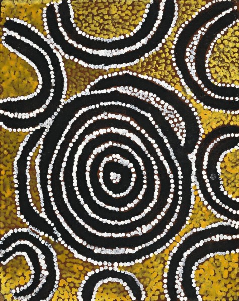 label verso: artist's name, size and'Tjukula Tingari Dreaming'