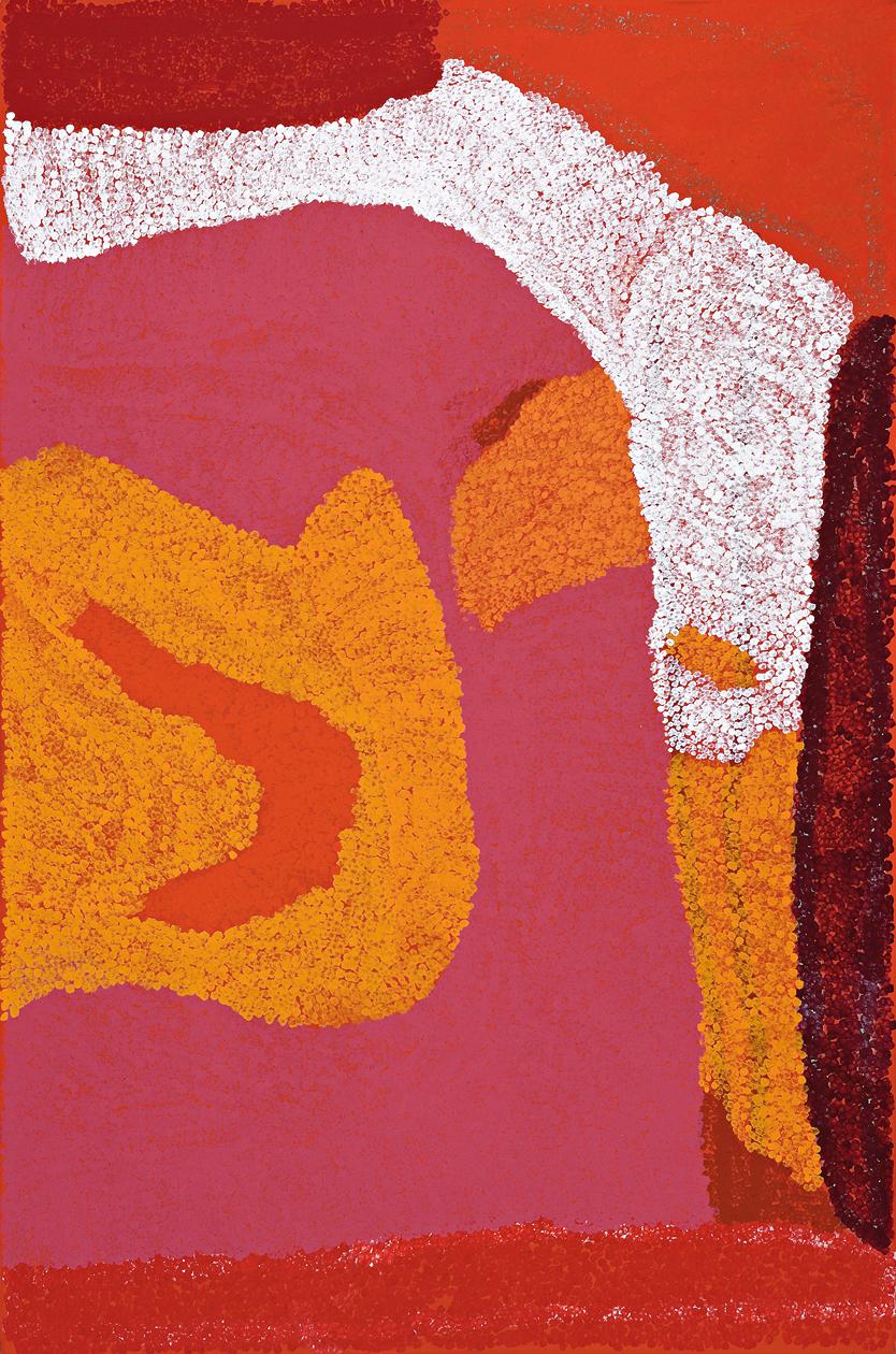This work is accompanied by a certificate of authenticity from Short Street Gallery which states: 'Pikarong is a jila (living water) in Jawinyand Mangala border country. This is both Lydia's parents' country. This is the country that Lydia was born in. It is strong woman's country forming part of the woman's jaw line. It is this side of Winpa. There is a lot of campi (bushfood) here especially king brown snake. This is Mangala country north of Winpa near well 33 on theCanning Stock Route in the Great Sandy Desert, W.A.'