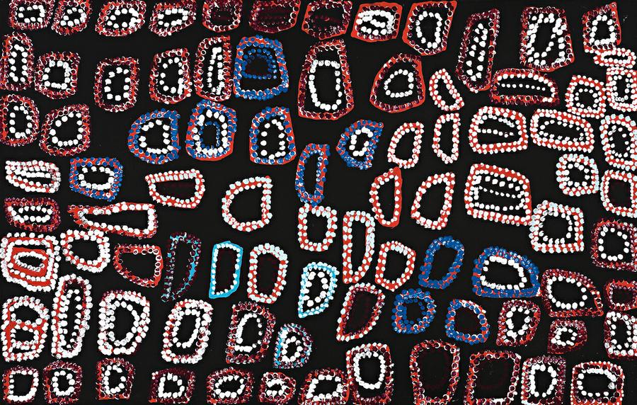 This work is accompanied by a certificate of authenticity from Short Street Gallery which states: 'You know this is Pinkarlarta, mummy mine been born there, we bush people us. I was born there. He got him big water, good water everyone can drink him. He gone now.'
