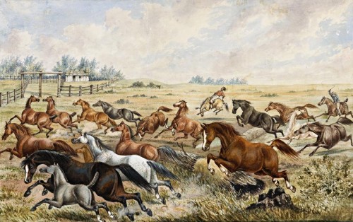 ROUNDING UP HORSES, c.1870
