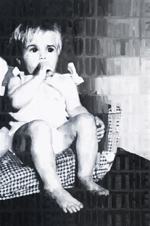 signed, dated and inscribed with title verso: Julie Fragar 04 BABIES COUNT THE BABIES