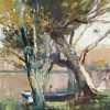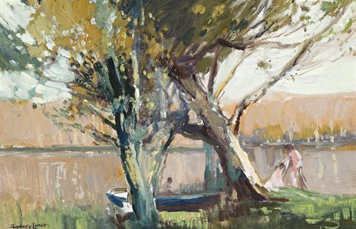 BOAT AND BATHERS AT NARRABEEN VERSO: RIVER LANDSCAPE