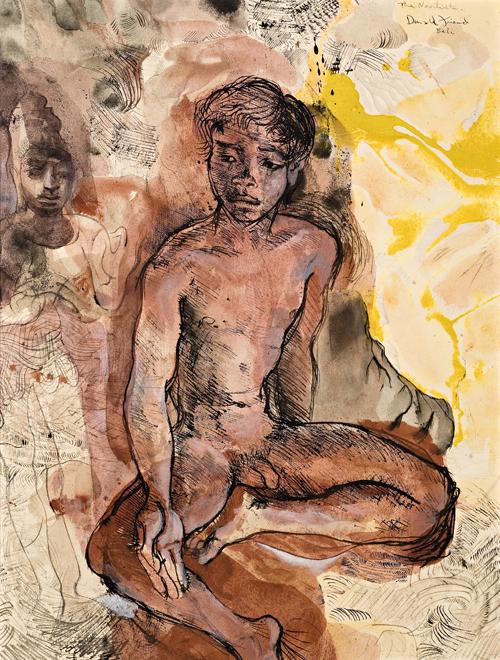 signed and inscribed with title upper right: The Novitiate./ Donald Friend/ Bali