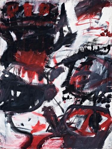 Betraying a myriad of artistic influences from Turner, Picasso, Klee and Pollock to fellow Australian painter Ian Fairweather, Tuckson's oeuvre is rich in its diversity, encompassing a number of different painterly approaches and phases. With its bold palette and dramatic gestural brushwork, the present work belongs to the period of his oeuvre generically known as the 'Red, Black and White' paintings - a chapter which opened with elaborately worked imagery and obvious narrative, and gradually progressed to stark minimalist compositions, revealing an awareness of American abstract expressionism and pop art. Interestingly, Daniel Thomas parallels this shift in Tuckson's style from the elegant, painterly works of the fifties which employed poetic graffiti marks and a more subdued palette, to the change in emphasis of collecting practices at the Art Gallery of New South Wales where the artist was Deputy Director and Curator - the progression from Aboriginal to Melanesian art signaling 'a change from fine delicate art to art which can be coarse and bold.'2