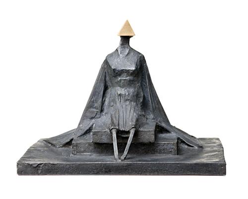 Although Chadwick's first creations were - quite appropriately, given his flying experience - abstract mobiles and elegant suspended constructions of metal and glass, it is his timeless architectonic forms combining elements of the human, animal and mechanical such as Sitting Woman in Robes III, 1987, for which he is most widely acclaimed. Evolving from the brooding standing figures of the sixties, and the voluminous, striding figures of the seventies onwards, the present bronze is an impressive example of the artist's seated figure motif which, though punctuating his entire oeuvre to a certain degree, culminates at this time - most famously in his monumental Back to Venice, 1988, commissioned the following year for the XLIII Venice Biennale.