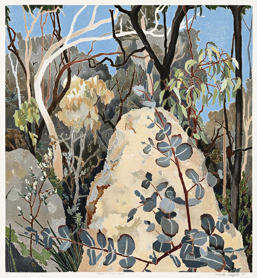 Crayford, P., (ed.), The Woodblock Painting of Cressida Campbell, Public Pictures Pty Ltd, 2008, p. 342, cat. P8804 (as 'Bush, Bakers Creek Falls')