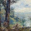 The earlier realism has given way to the freer Impressionist style, where the subject is the transient effects of nature, of changing light and colour. McCubbin loved the Macedon bush, as this painting shows so readily. As the enclosed foreground opens out into the distant panorama, the smoke of the fire blends with the haze of distance. The feeling of spontaneity that comes from painting en plein air gives it that special immediacy of appeal, in perfect harmony with the intimacy of the painting's size. This sparkling light, landscape and campfire are found again a few years later in Landscape, Macedon, c1914 (Art Gallery of New South Wales).