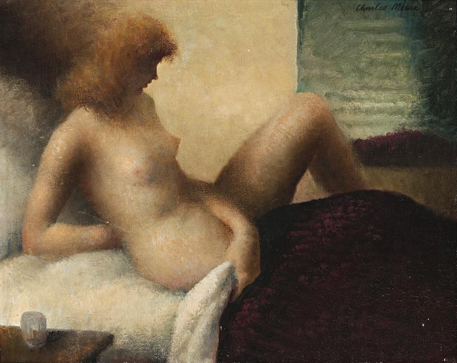 During World War I Meere served with the London Regiment. In 1919 he married Denise Moreau, whom he had met when hospitalised in France. Studying design and mural painting at the Royal College of Art, London from 1919-22, he later painted in France and furthered his studies at Colarossis, Paris. Their son Desmond was born in 1920, the family eventually settling in Dinan, Brittany, one of the most attractive walled towns in France. It inspired a number of grand landscapes as The Viaduct, France, 1924 and Dinan, 1926, shown in the 1987 exhibition of Meere's work presented by the S.H. Ervin Gallery, Sydney. Meere is also represented in the Musée du Chateau de Dinan. In 1927 Meere visited Australia, before settling here in 1933. He was awarded the Sulman Prize in 1938 and the Wynne Prize in 1951. During the forties he painted several Dinan landscapes, Dinan sur la Rance, 1941 and Au fond du viaduct à Dinan, c1944 also being included in the S.H. Ervin exhibition of 1987. French Nude, c1939 was probably painted during this period. While Meere's reflections on France were possibly aroused by German occupation during World War II, the diaphanous nature of French Nude is redolent of recollection, dreaming of what once was.