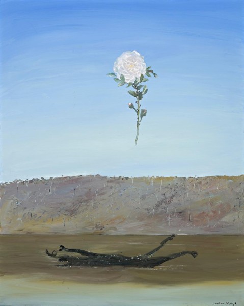The rose symbolises the imposition and the cultural arrogance of the English as they tried to make 'a little England' in Australia. I was also trying to show the fragility of transporting this culture into such a harsh environment. The rose and the carcass are contrasting symbols.4