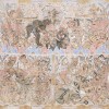 The top scene of the painting shows Rama and Laksmana with Jatayu shooting arrows at Rawana. On thebottom left Laksmana has been hit by Rawana's arrow and is healed by Wibisana with a herb collected by Hanoman, the white monkey. On the bottom right Rama uses Indra's arrow to shoot Rawana in his chariot. Tabingare roughly-square cloths most often hung over the wooden backboards of offering platforms.