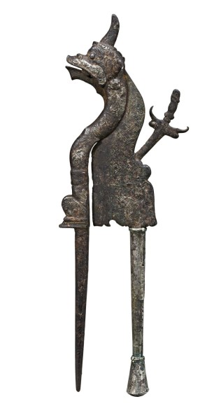 iron, forged in the shape of Delem with kris, one arm covered with silver