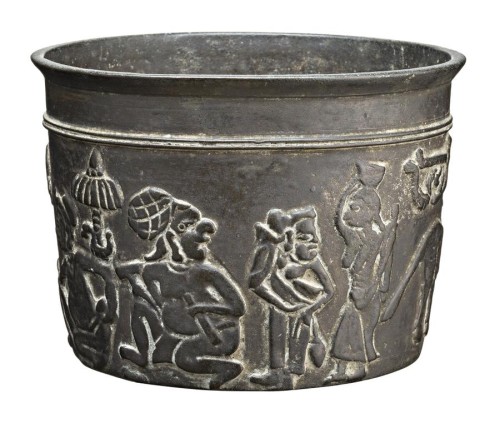 bronze, depicting wayang figures