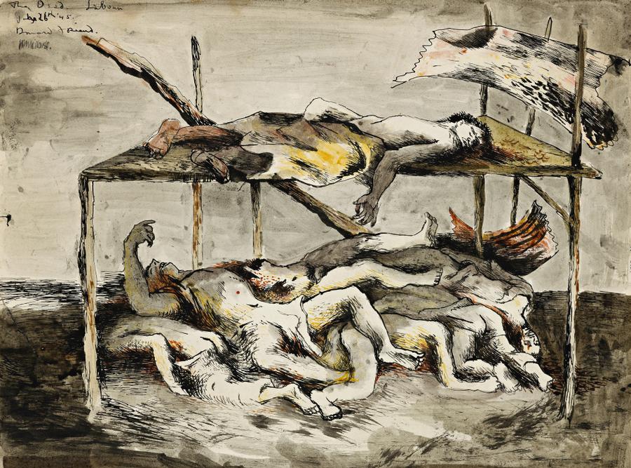 signed, dated and inscribed upper left: The Dead, Labuan. / July 26th '45 / Donald Friend
